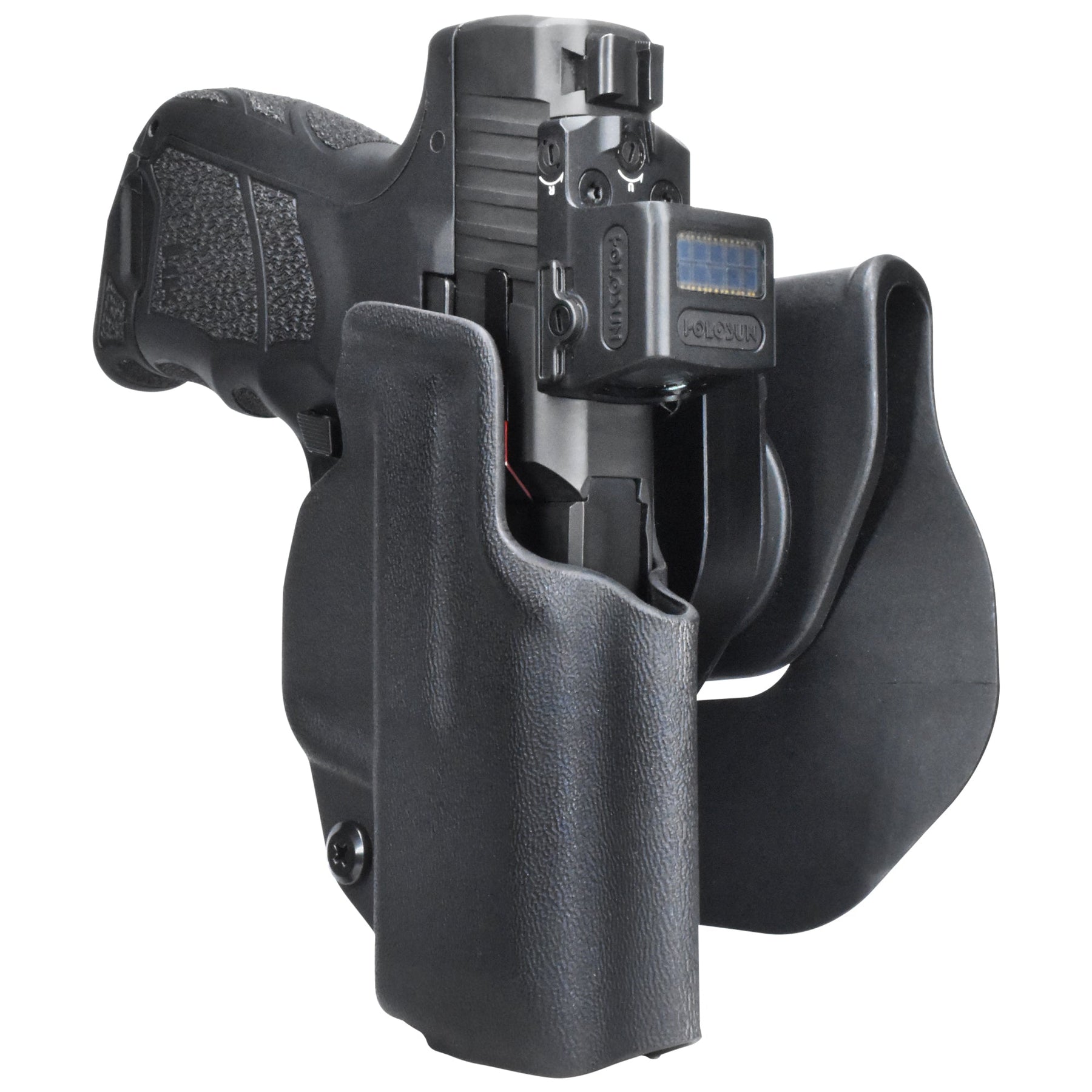 • The full sight channels on this holster are engineered to accommodate all standard sights, most suppressor sights (up to 10mm tall), and loaded chamber indicators.